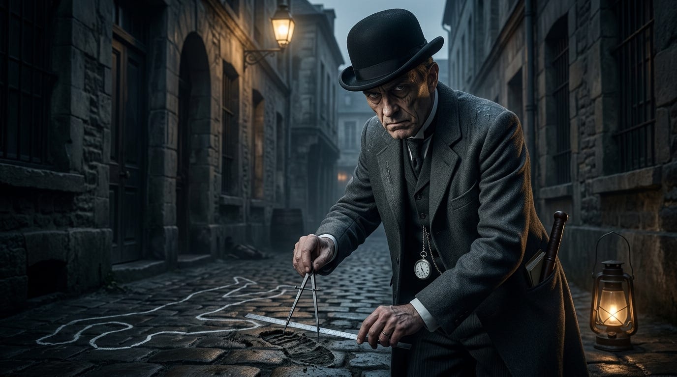 Bertillon Kumpas ve Cetvelleri: Suç mahalline girdiğinde ilk işi, kanıtları ve şüphelilerin vücut ölçülerini (Antropometri) almak için kullandığı o soğuk çelik pergelleri çıkarmaktır.